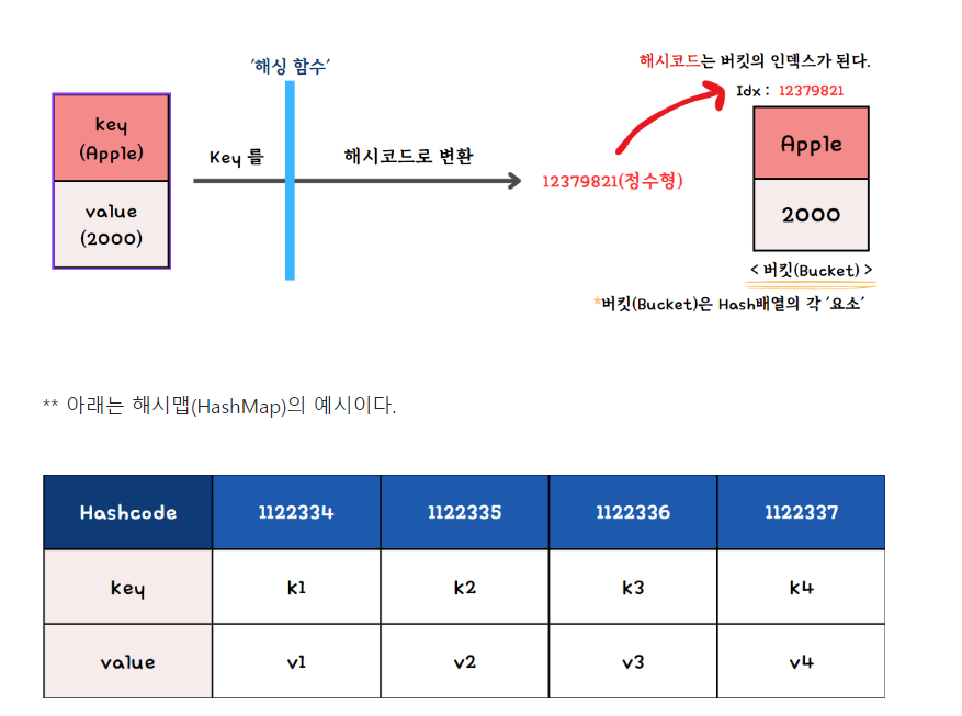 반환된 해시코드는 Hash 배열의 각 요소인 '버킷(Bucket)'의 인덱스가 된다.