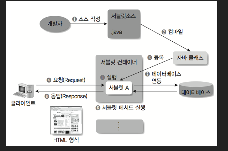클라이언트의 요청을 처리하고, 그 결과를 반환하는 Servlet 클래스의 구현 규칙을 지킨 자바 웹 프로그래밍 기술.