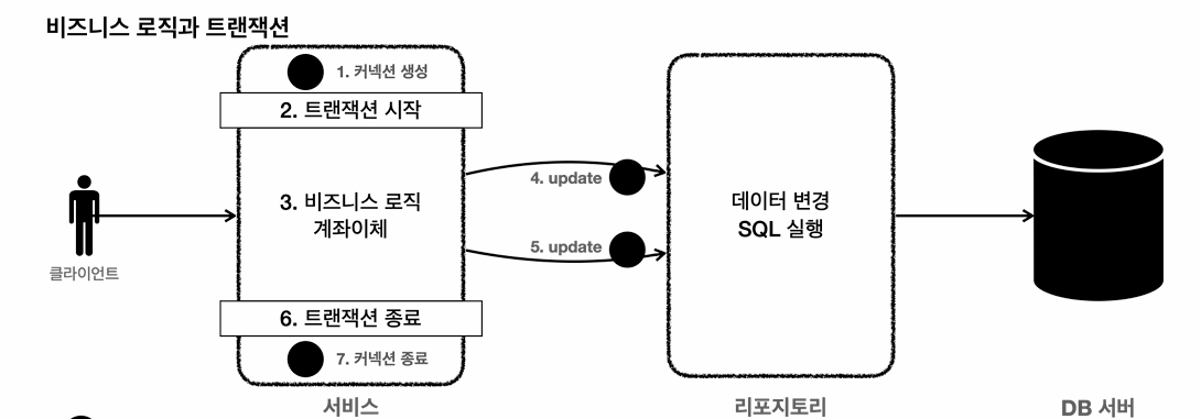 트랜잭션은 비지니스 로직이 잘못되면 함께 롤백해야 하기떄문에  비지니스 로직이 있는 서비스 계층에서 시작해한다. 그런데 트랜잭션을 시작하려면 커넥션이 필요하기떄문에 서비스 계층에서 커넥션을 만들고, 트랜잭션 커밋이후 커넥션을 종료해야한다. 즉,