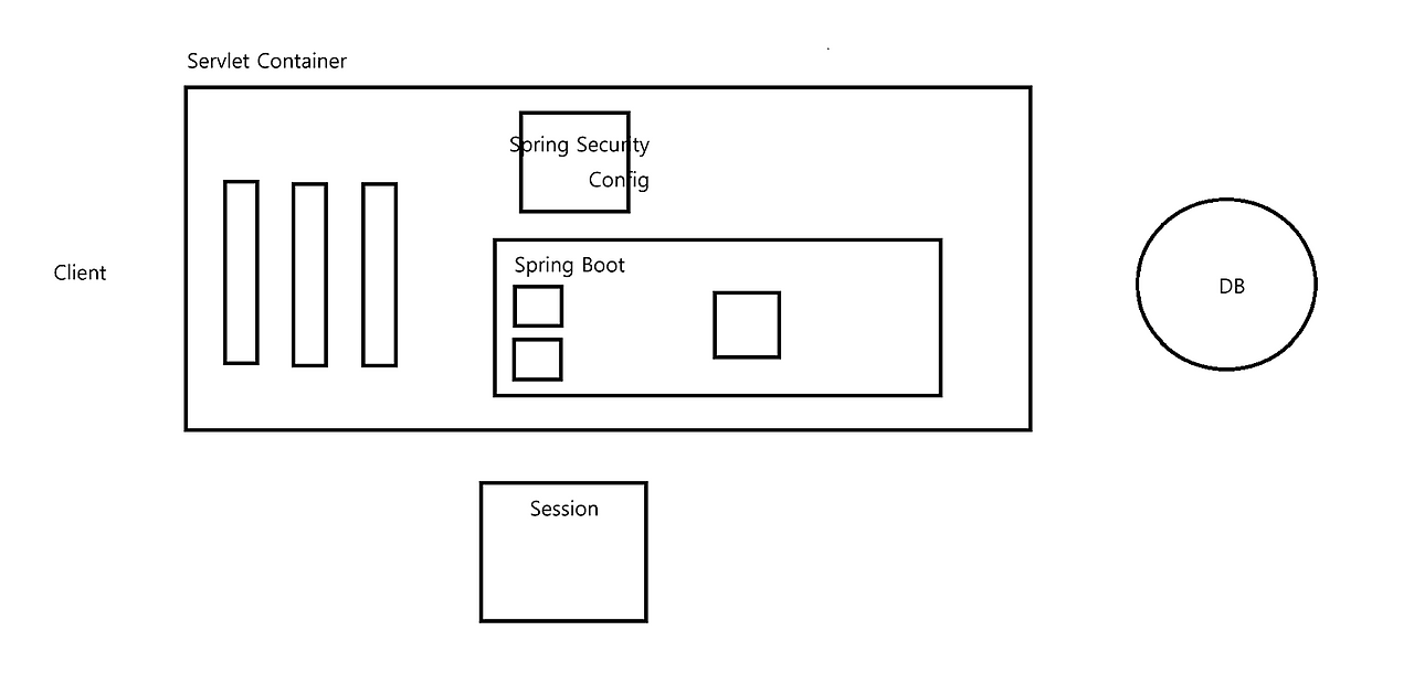 - 요청은 서블릿 컨테이너 → 스프링 시큐리티 필터 체인 순서로 들어옴