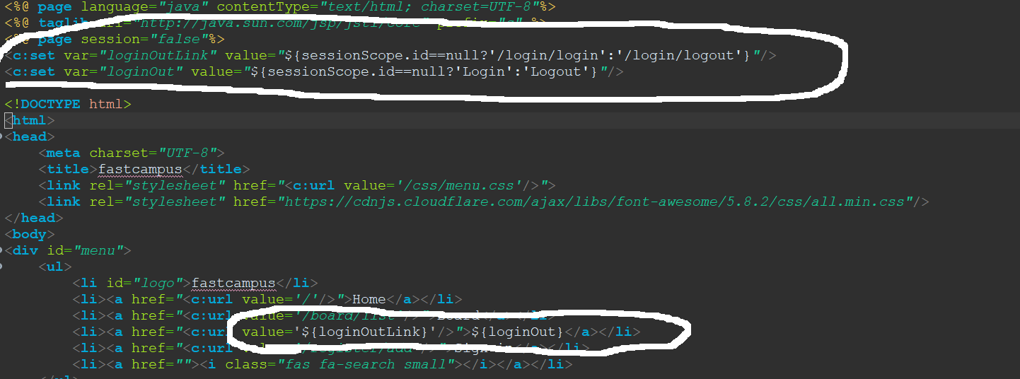 로그인시 상단바에 고정값이 아니라, EL로 변동값을 받을 수 있도록 한다.