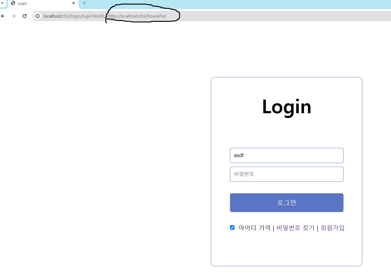 파라미터로 String toURL을 받고, 유효성 체크가 끝나고 로그인 성공시, 우리가 최초 요청했던 /board/list화면으로 리다이렉트 하면 끝.!