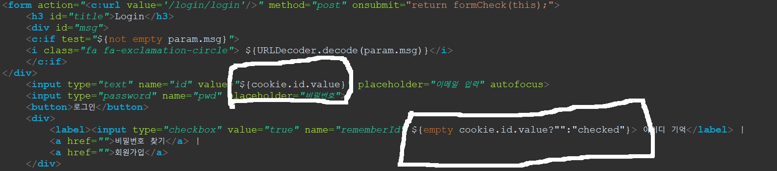 <input type="text" name="id" value="${cookie.id.value}" placeholder="이메일 입력" autofocus>